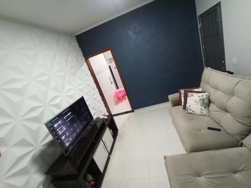 A casa possui: três dormitórios sendo uma suíte, sala, cozinha, banheiro, área de serviço e garagem para dois carros.