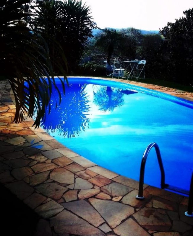 Lavanderia coberta ,piscina ,campo de futebol com rede de proteção e refletores , pequeno pomar , espaço para seis carros e Canil .