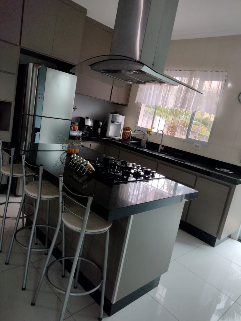 Descrição : 1000 MT casa com dois andares sendo dois quartos na parte superior , na parte inferior, escritório ,uma suíte , banheiro social ,cozinha gourmet com móveis planejados ilha com fogão e coifa ,sala de jantar e sala de estar conjugada pé direito alto .portas de vidro , lareira área externa com pia , churrasqueira ,