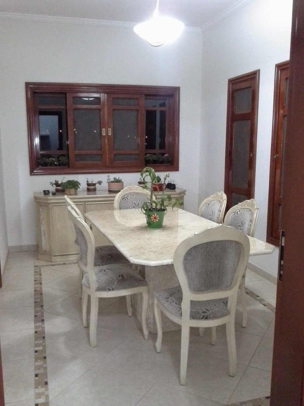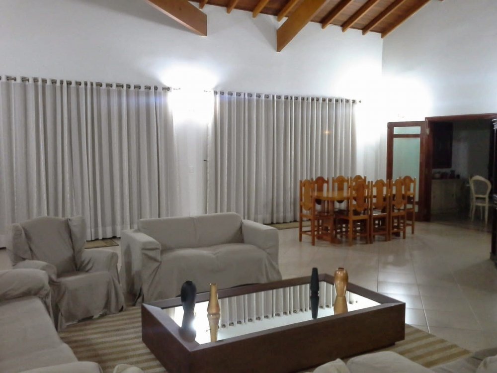 Ampla sala com lareira, lavabo, sala de almoço.